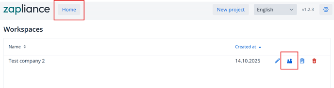 - Go to Home in the top navigation tab of zapAnalytics. You will see an overview of all your workspaces that can be assigned to other users.