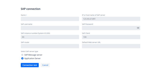 Information on the configuration and provision of the RFC user can be found in the article: SAP user role permissions - SAP Connection Data: