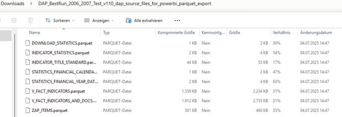zapAnalytics produces output files as defined in the content bundle. This typically includes zapAnalytics result files (.parquet) and Power BI template files (.pbit).