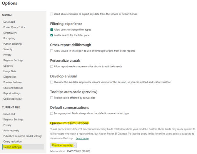 Depending on the parquet file size, data loading may take up to 10 minutes. - The following settings must be configured for the user within the Power BI templates to achieve smooth and consistent reporting.